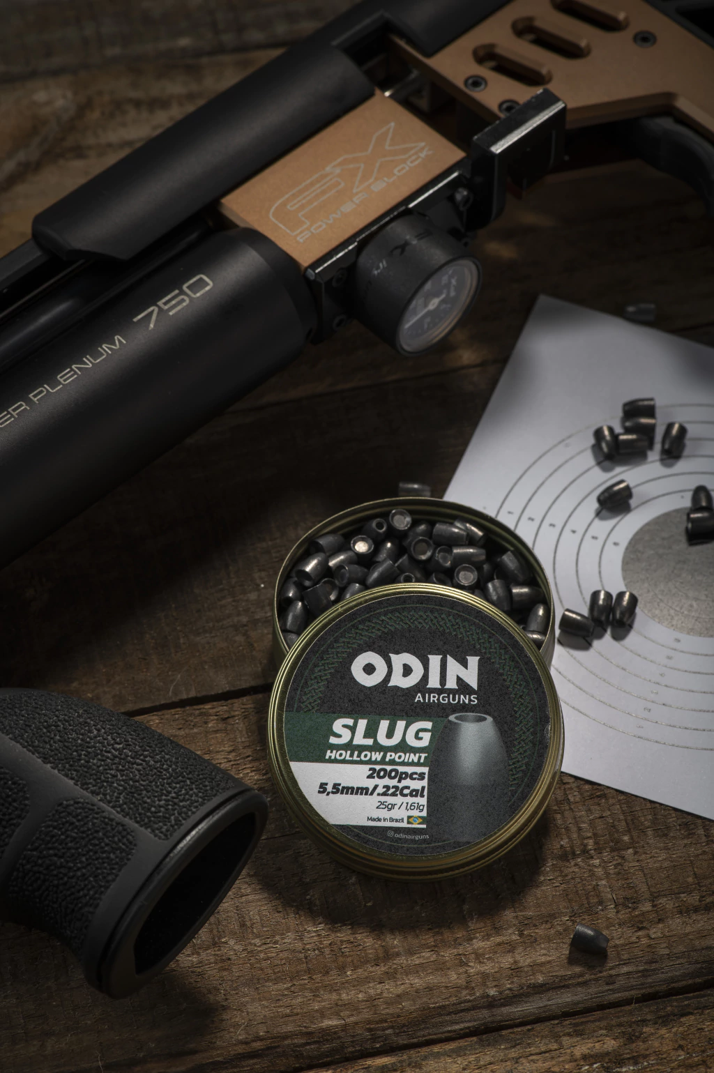 O chumbinho Odin Slug 25g calibre 5.5mm foi desenvolvido para oferecer desempenho superior em carabinas de alta potência, especialmente em disparos de média e longa distância.